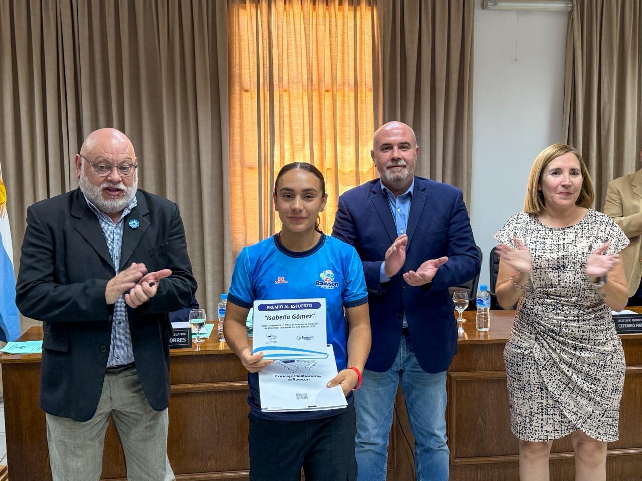 Durante la 17º Sesión Ordinaria del Período 2025, el Honorable Concejo Deliberante de Rawson hizo entrega del “Premio al Esfuerzo”, reconocimiento establecido por la Ordenanza Nº 776-C para destacar a los deportistas rawsinos que se han distinguido por su compromiso, desempeño y trayectoria a lo largo del año.